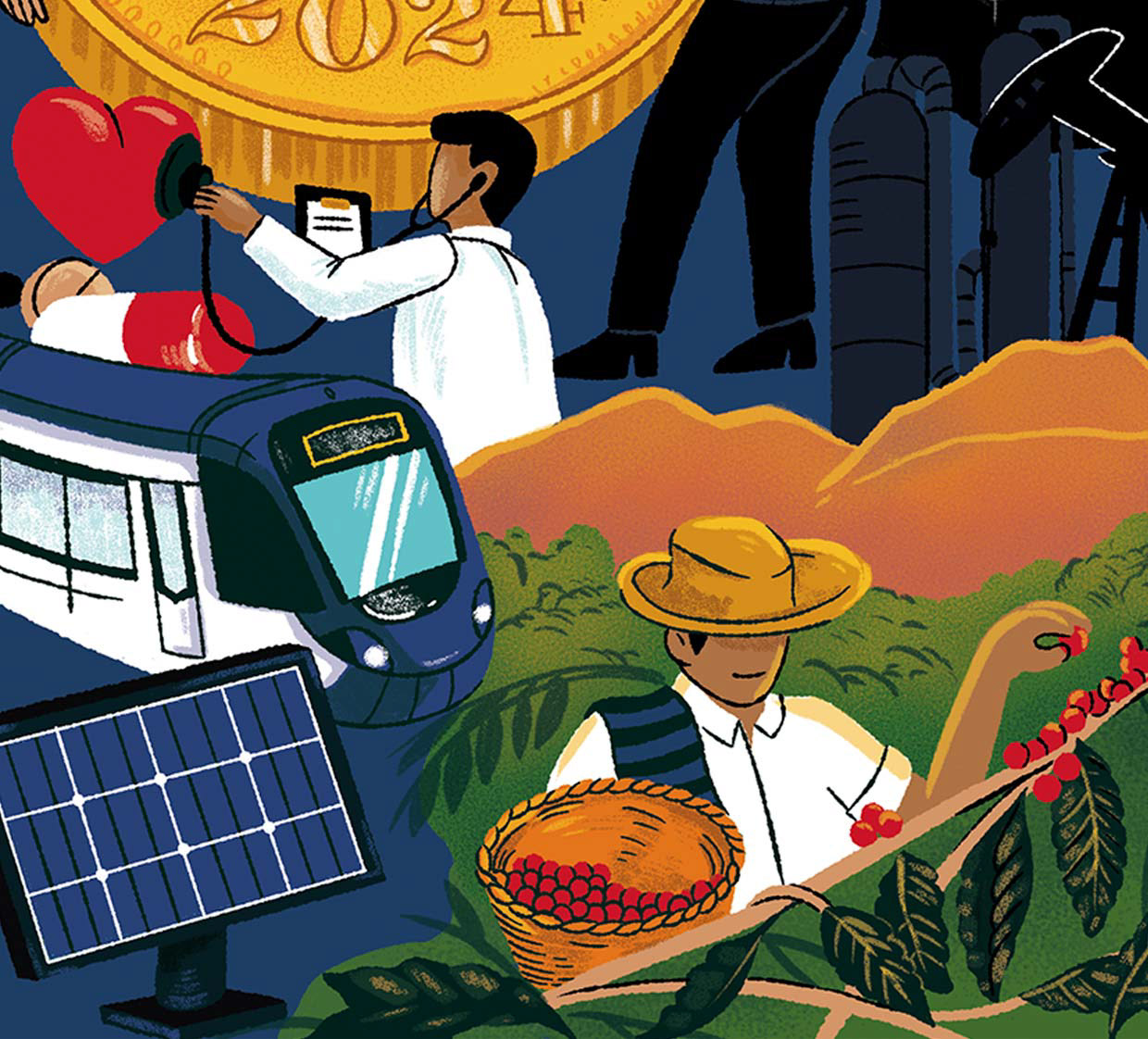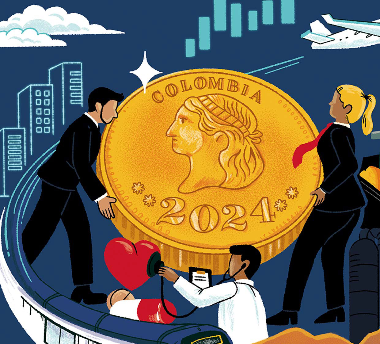 Cover of the annual magazine for 360 media. Portrait of Colombia's economy and industry.