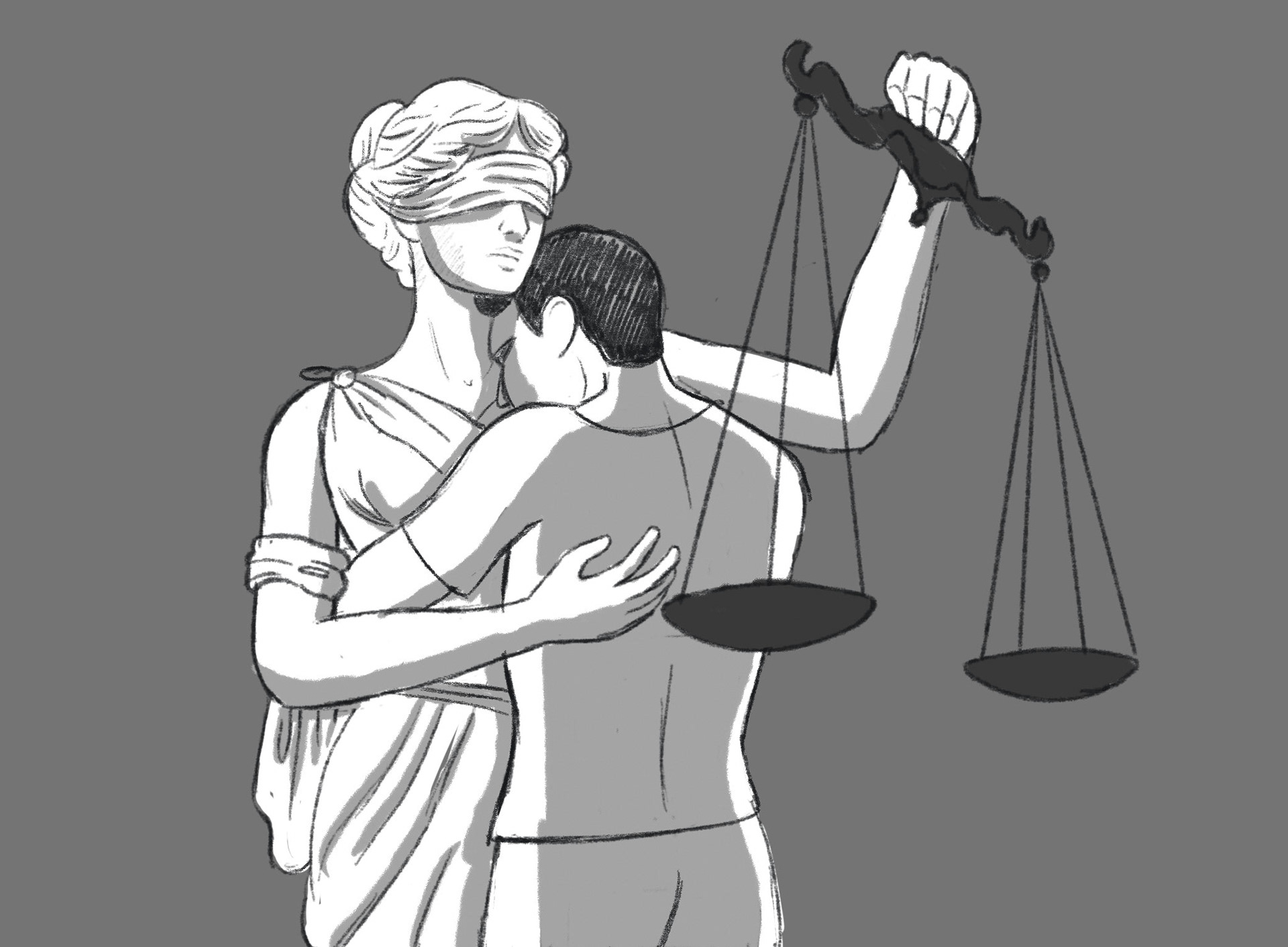 This illustration for a newspaper article talks about how justice cannot exist without mercy and vice versa.
